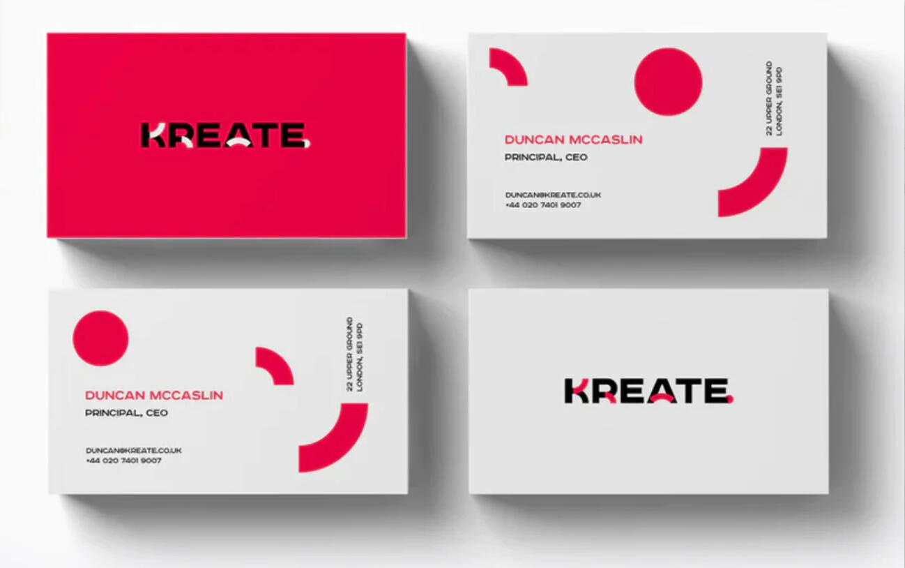 This week we’ll take a look at a branding approach called Shape Branding.In brand design, you can use the characteristic shapes from your logo as motifs throughout the brand.As an example, the Kreate brand design takes a circle and arc shape from the Kreate logotype and applies it rhythmically to business cards, posters, and more.Brand recognition is enhanced by repetition of shapes. The shapes will make you think "Kreate" every time you see them!