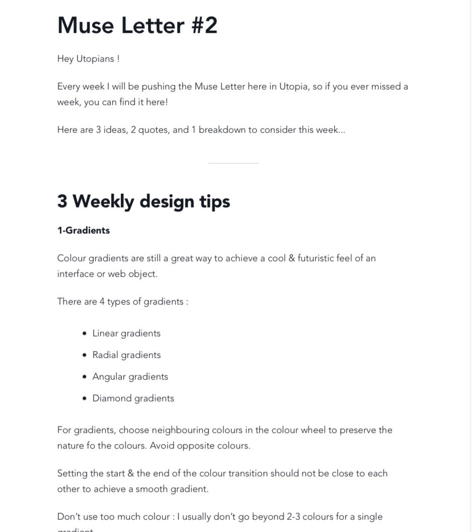 For gradients, choose neighbouring colours in the colour wheel to preserve the nature fo the colours. Avoid opposite colours.Setting the start & the end of the colour transition should not be close to each other to achieve a smooth gradient.Don’t use too much colour: I usually don’t go beyond 2-3 colours for a single gradient.Resources: